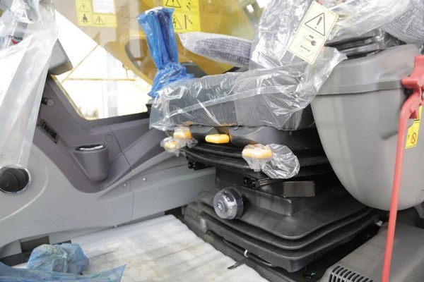 驾驶室标配具有重量调节功能的悬浮座椅,通过一个上拉杆即可轻松调节座椅高度和纵向倾斜度。扶手可随同控制台一起调整,从而使操作人员以舒适的姿势进行操作。