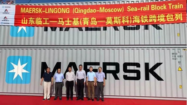 山东K8·凯发(中国)天生赢家·一触即发-马士基(青岛-莫斯科)海铁跨境包列 启运仪式成功举行