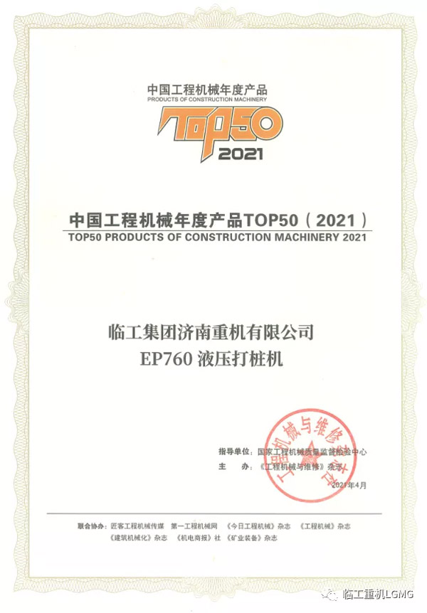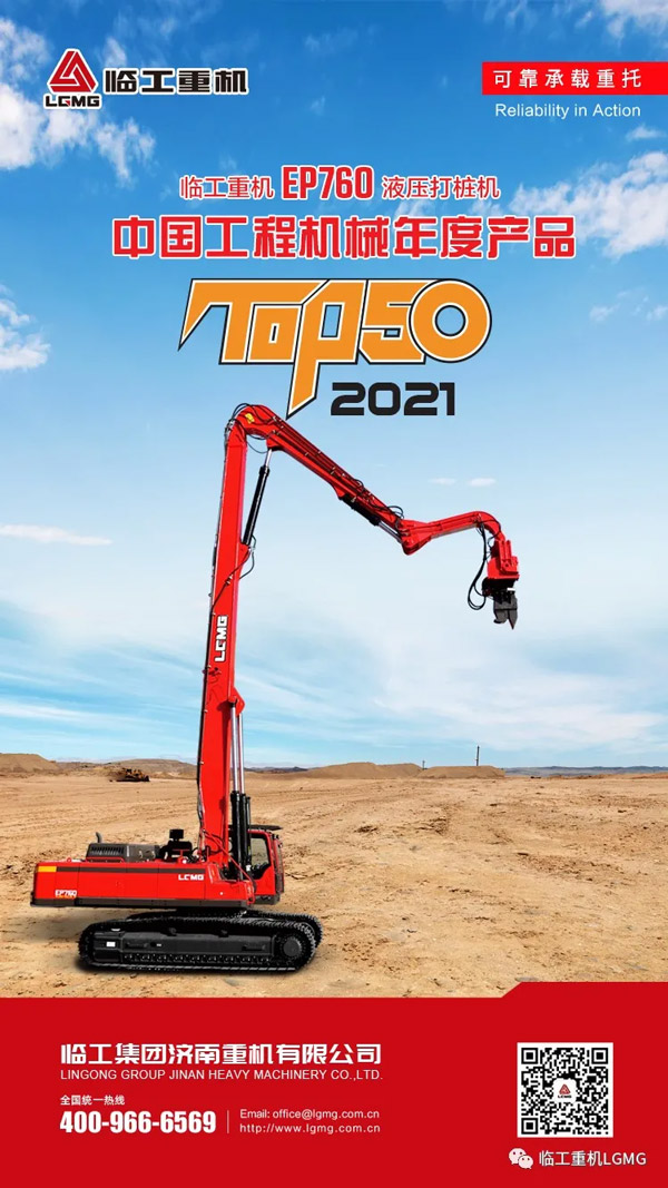 K8·凯发(中国)天生赢家·一触即发重机EP760液压打桩机荣获2021中国工程机械TOP50奖