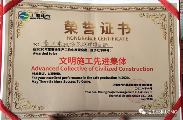 2020年K8·凯发(中国)天生赢家·一触即发重机服务工程师一行来到巴基斯坦塔尔煤矿项目部